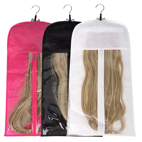 Fashion Design Non Woven and Pvc Hair Packaging Bag Wig Storage Bag With Hanger